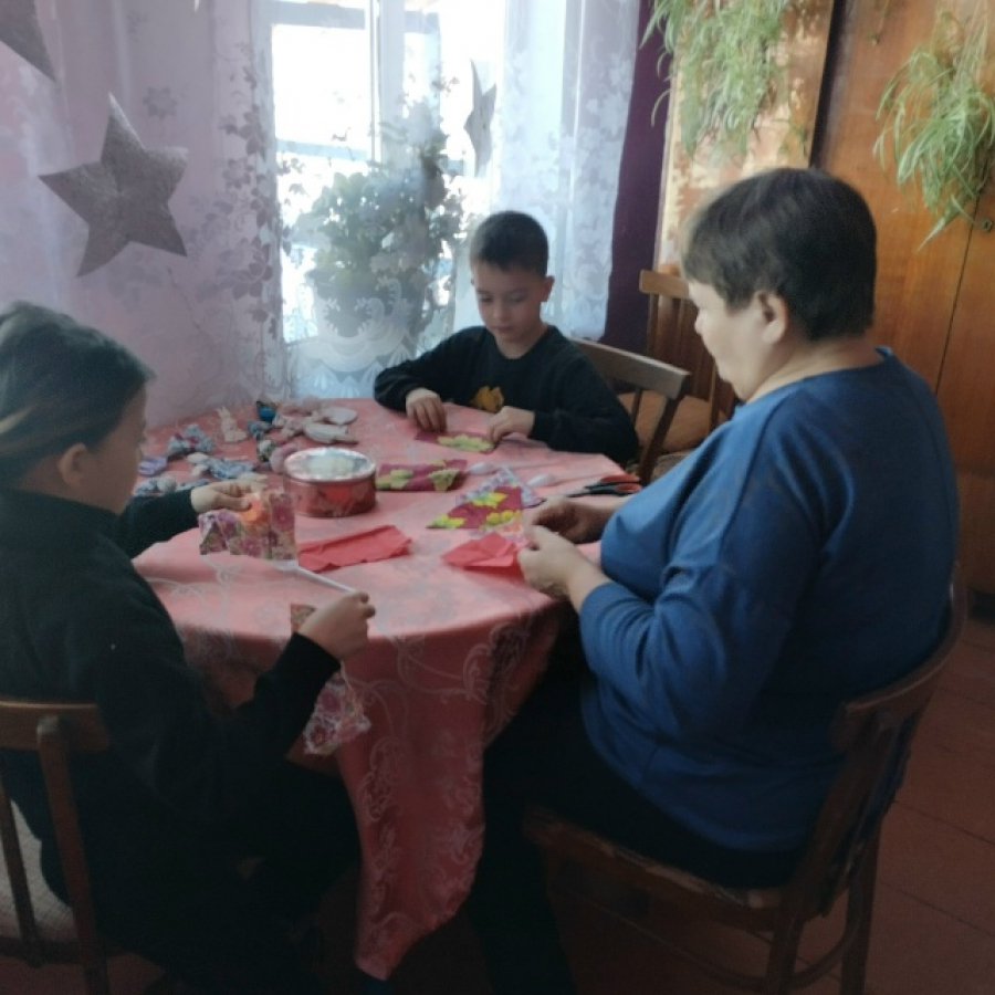 «Давайте мы сегодня с вами отступим от традиционного лакомства масленичными блинами и на минуточку заглянем в кладовую ремесел наших предков. Одним из интересных действий на Масленицу было изготовление народной тряпичной куклы. Эту куколку делали много столетий назад в русских селениях, и появилась она в попытке сохранения древних традиций. Небольшая тряпичная кукла делалась для оберега дома, семьи и благополучия, хранили ее целый год». Культорганизатор Большекусерякского сельского клуба предложила детям смастерить обереговую куколку. Для изготовления куклы нужно совсем немного ткани, атласной ленты и нитей, ну и, конечно же, хорошего весеннего настроения, и вот уже куколка получилась как по маслу — яркая, красивая, солнечная. Про таких кукол бытовало мнение, что глаз нет, а всё видит, сердца нет, а добрая, румяная, как блин на Масленицу.