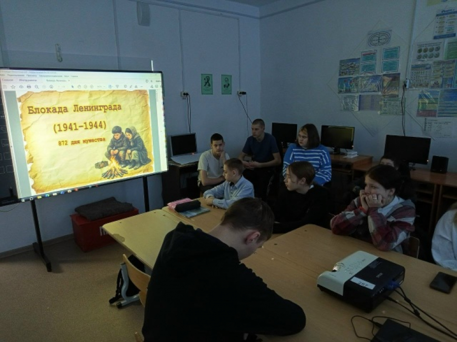 В честь этой памятной даты специалисты СДК провели для старшеклассников Урок мужества «Непокоренный Ленинград». Ребята посмотрели фотоматериалы блокадного города, узнали о «Дороге жизни» и о судьбе 11-летней ленинградской школьницы Тани Савичевой.